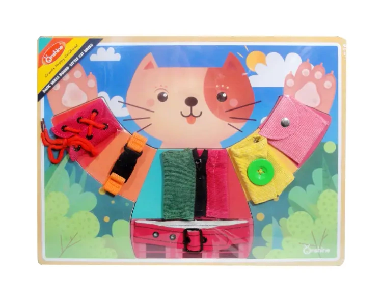 Zabawka edukacyjna dla dzieci, która pomoże dzieciom nauczyć się jak zasznurować ubranie, zapiąć zamek, guzik czy pasek.