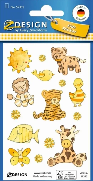 Brokatowe naklejki - Żółte zwierzątka - Zdesign