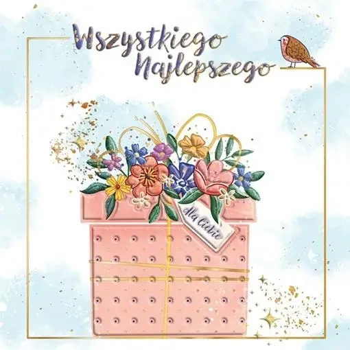Kwadratowy karnet okolicznościowy w zestawie z kopertą. Złocony i tłoczony.