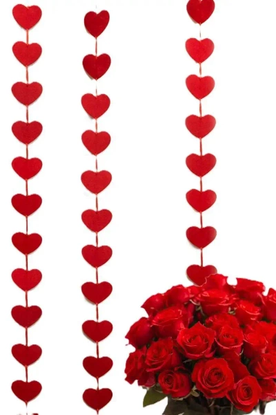Pionowa tasiemka z czerwonymi serduszkami to subtelna dekoracja, która odmieni każde wnętrze. Idealna na walentynki, romantyczne wieczory czy sesje zdjęciowe. Może być stosowana pojedynczo lub w zestawie kilku, które w całości stworzą bogatą girlandę. Specyfikacja: - Długość: 2 m - Kolor: czerwony - Serduszka na tasiemce Korzyści: - Łatwa do zawieszenia w dowolnym miejscu. - Stworzona z myślą o romantycznym klimacie. - Doskonale uzupełnia inne dekoracje. Girlanda z serduszkami tworzy magiczną atmosferę w każdym wnętrzu.