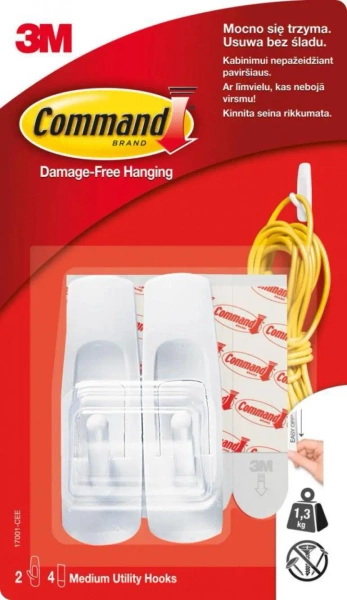 Haczyki wielokrotnego użytku Command średnie białe 2szt.