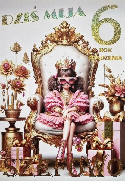 Karnet 3K to bogato zdobiony karnet z elementem naklejanym oraz złoceniem. Karnet to doskonały dodatek do prezentu. Karnet zawiera również zabawne życzenia.