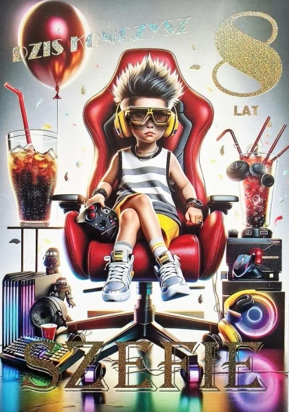 Karnet 3K to bogato zdobiony karnet z elementem naklejanym oraz złoceniem. Karnet to doskonały dodatek do prezentu. Karnet zawiera również zabawne życzenia.
