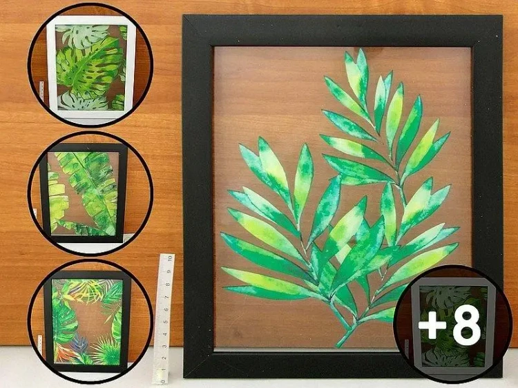 dekoracja - obraz, liście malowane na szkle; 28,5x23,5x1,2cm, PPB