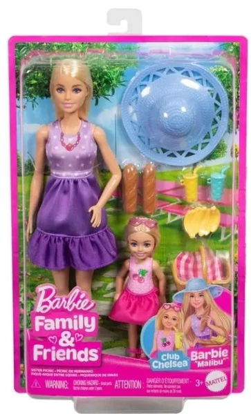 Dzięki lalkom i zabawkom Barbie Family and Friends dzieci mogą bawić się i przyjaźnić w tak zgranym gronie! Lalki Barbie Malibu i młodsza siostra Chelsea wybierają się na piknik, a dzieci mają wszystkie elementy do rozegrania tej klasycznej chwili. Dziewięć tematycznych elementów obejmuje modne akcesoria, kosz, jedzenie, napoje i koc! Aby jeszcze więcej zabawy z opowiadaniem historii zapewniały dzieciom inne zabawki z linii Family and Friends. Lalki nie mogą stać same. Kolory i dekoracje mogą się różnić.
