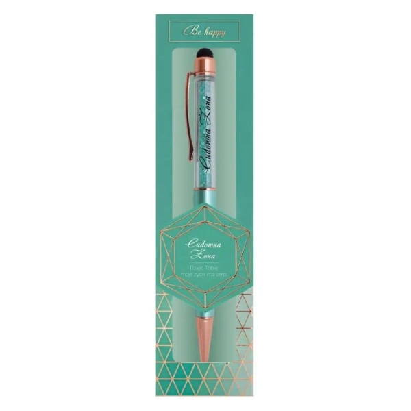 Oto elegancki długopis, który łączy ze sobą styl oraz codzienną funkcjonalność. Jego wyjątkowy design z delikatnymi kryształkami umieszczonymi w obudowie natychmiast przyciąga wzrok, dodając odrobiny luksusu każdemu, kto go używa.