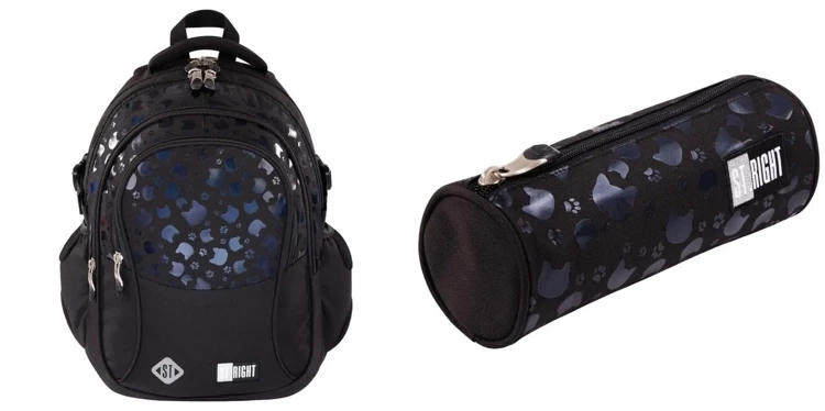 Plecak szkolny 4 komory + piónik tuba BLACK CATS koty St.Right czarny