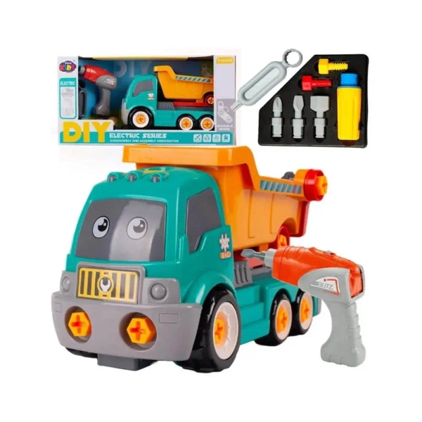Kolorowa duża wywrotka z ruchomą burtą z tyłu to świetna zabawka dla dziecka, które uwielbia majsterkować - zabawka zajmie Twoją pociechę na wiele godzin. Do zabawki dołączono zestaw narzędzi - wkrętarkę, śrubokręt oraz wymienne końcówki stanowiące nieodłączny element tej zabawki, pozwalając dzieciom na samodzielne rozkręcanie i skręcanie pojazdu. Zabawka rozwijająca koordynację ruchową i wzrokową dziecka jest świetną formą spędzania czasu dla dziecka. Ciężarówka do samodzielnego skręcania to zabawka, która doskonale pobudzi kreatywność u dzieci. Samochód wywrotka do skręcenia to prawdziwa gratka dla najmłodszych fanów motoryzacji i majsterkowania. Model pojazdu wzorowany na prawdziwej ciężarówce do przewożenia towarów z mnóstwem elementów do samodzielnego skręcania i rozkręcania zachwyci każdego malucha! Ciekawe wykonanie, uśmiechnięta buźka - na pewno zadowolą każde dziecko.