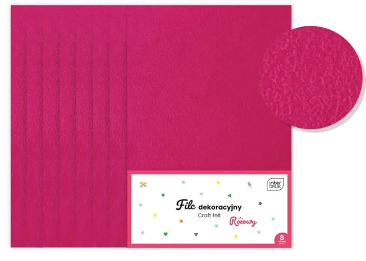 Filc dekoracyjny 8szt różowy - INTERDRUK