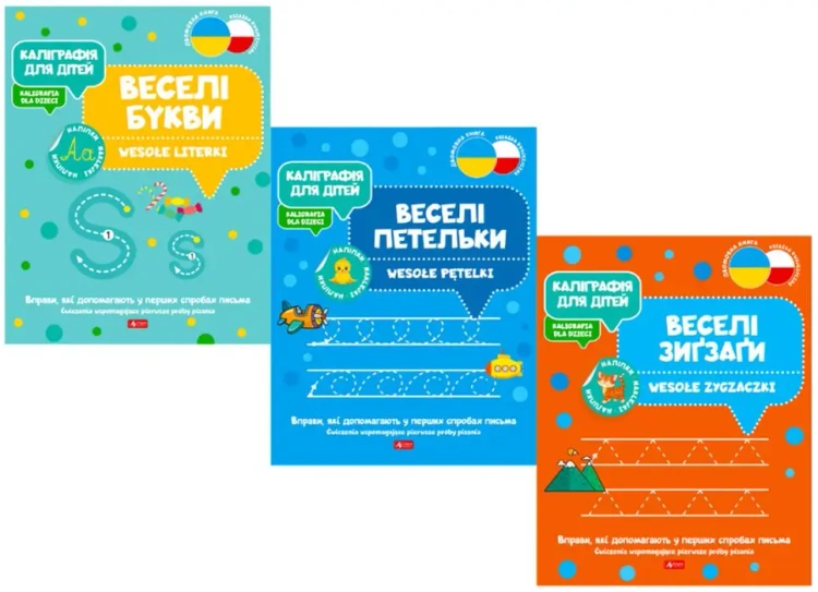 Kaligrafia dla dzieci wer. Ukraińska: / Kaligrafia dla dzieci to seria dwujęzycznych zeszytów zawierających ćwiczenia wspomagające pierwsze próby pisania. Dziecko uczy się poprawnie trzymać ołówek, ćwiczy cierpliwość i dokładność. Poszczególne zeszyty utrwalają znajomość liter i cyfr, uczą samodzielności, stanowiąc doskonałe wsparcie procesu dydaktycznego. Dołączone arkusze naklejek dostarczają przy okazji świetnej zabawy!