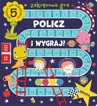Książka zabiera małych czytelników do ekscytującego świata GIER PLANSZOWYCH. Przejażdżka po torze wyścigowym czy piknik z misiami to WSPANIAŁE WYZWANIA. Dołączone do książki kostki są przymocowane na stałe, tak by można było nimi wygodnie kręcić.