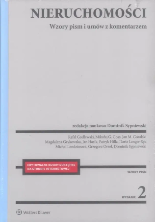 Nieruchomości. Wzory pism i umów to publikacja zawierająca wzory pism i umów dotyczących szeroko rozumianej gospodarki nieruchomościami. Dotyczą one m.in. takich zagadnień jak: prawo do nieruchomości, nabywanie nieruchomości przez cudzoziemców, księgi wieczyste, ewidencja gruntów i budynków, prawo budowlane, najem lokali, podział i scalenie nieruchomości.