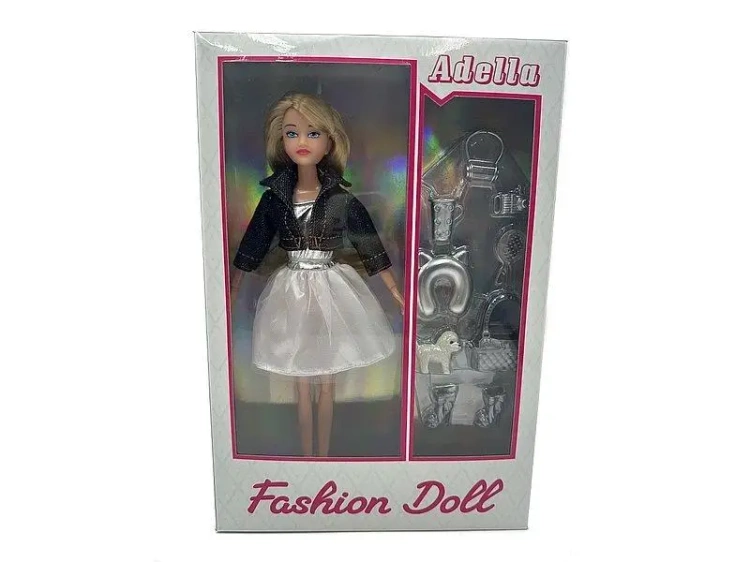 lalka 29cm ze zginalnymi nogami, z akcesoriami, 33x22,5x5cm; W/B