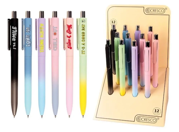NOTE to uniwersalny długopis o wymiennym wkładzie z niebieskim tuszem i 1mm grubości linii zapisu. Wyposażony w mechanizm pstrykający do wysuwania wkładu, oferuje interesującą paletę kolorystyczną. Miękkie wykończenie sprawia, że długopis wygodnie leży w dłoni, a srebrne, subtelne akcenty dodają mu klasy.