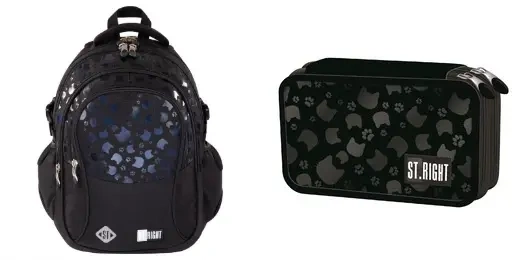 Plecak szkolny 4 komory + piórnik z wyposażeniem BLACK CATS koty czarny