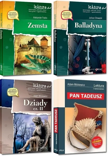 Pakiet lektury Podstawówka Matura Pan Tadeusz, Zemsta, Balladyna, Dziady II - Adam Mickiewicz