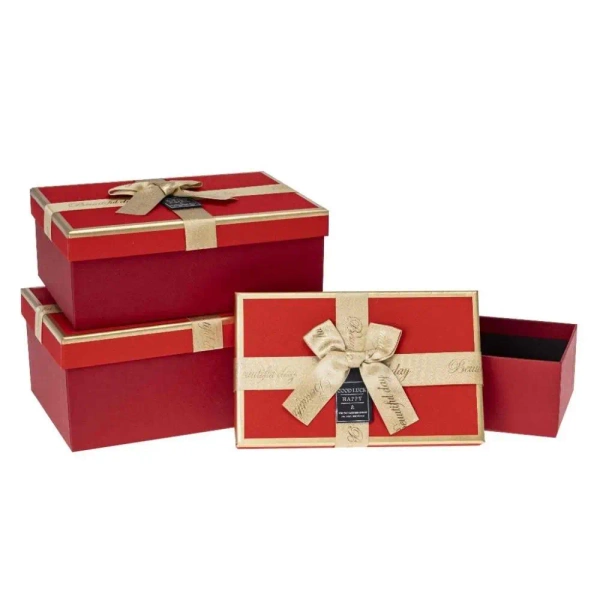 Zestaw pudełek prezentowych z kokardą 3szt czerwony