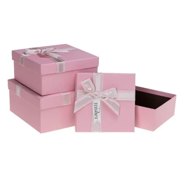 Zestaw pudełek prezentowych z kokardą 3szt różowy