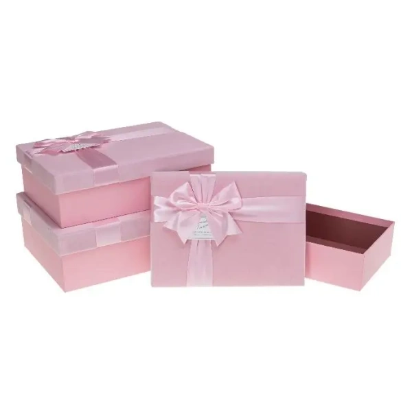 Zestaw pudełek prezentowych z kokardą 3szt różowy