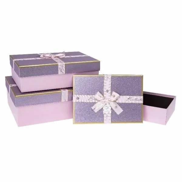 Pudełko prezentowe z kokardą 3szt fiolet ROZETTE