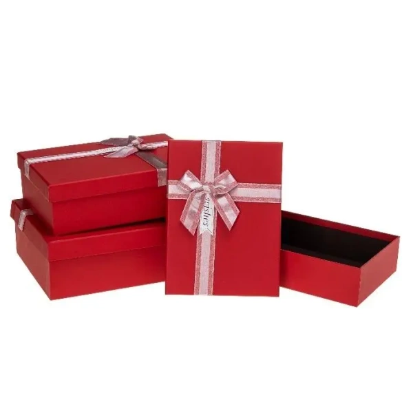 Zestaw pudełek prezentowych z kokardą 3szt czerwony