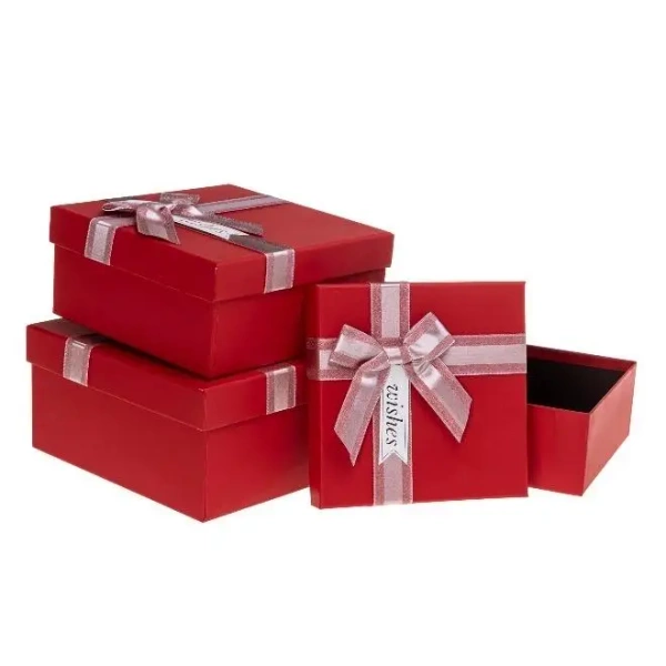 Zestaw pudełek prezentowych z kokardą 3szt czerwony