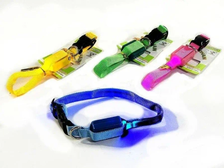 Obroża dla psa ze światłem, 3 tryby świecenia, Baterie 2xCR2032 dołączone. Obwód 35cm