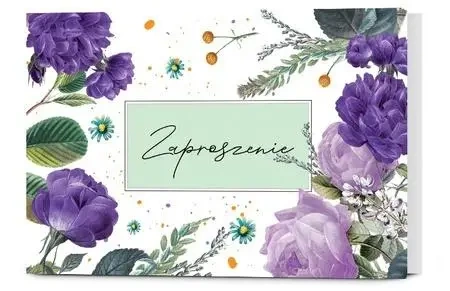 Zaproszenia w kompletach po 10 sztuk. W zestawie znajduje się koperty, kolorystycznie uzupełniające się z zaproszeniami.