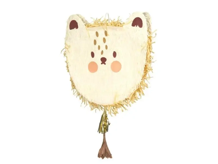 Piniata składana w kształcie głowy lwa, mix kolorów, do wypełnienia upominkami, słodyczami lub płatkami kwiatów. Wymiary po złożeniu ok. 48 x 48 x 10 cm.