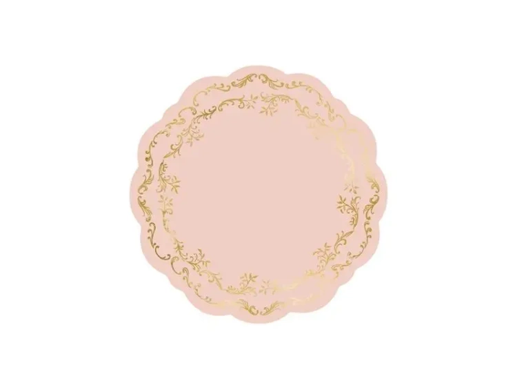 Przedstawiamy jednostronne podkładki utrzymane w subtelnym odcieniu brudnego różu, wzbogacone o wyrafinowany złoty ornament. Ich średnica wynosi około 35,5 cm, co czyni je idealnym dodatkiem do różnorodnych aranżacji stołu.