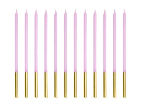 Świeczki urodzinowe gładkie w kolorze fioletowym, wysokość ok. 14 cm. Zestaw zawiera 12 świeczek.(1 op. / 12 szt.)