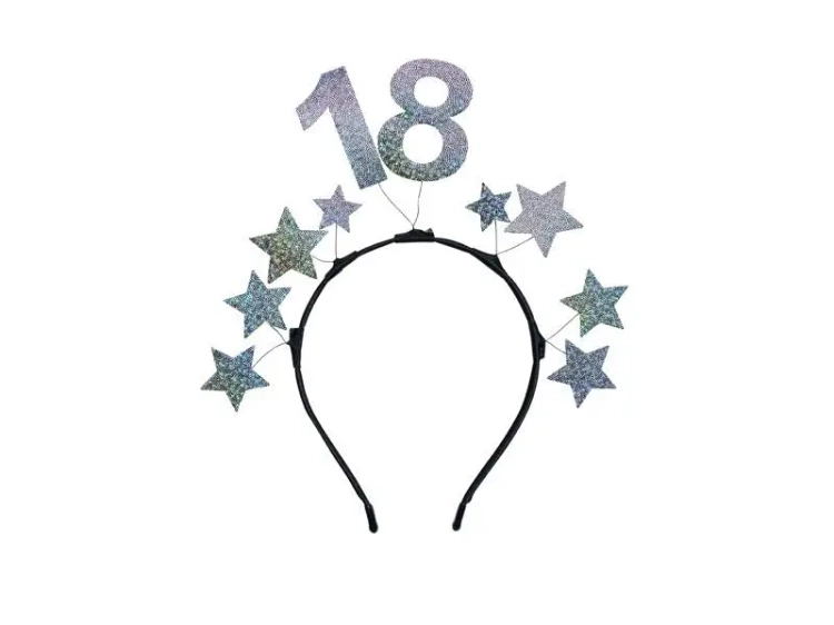 Opaska z gwiazdkami 18 w kolorze srebrnym, rozmiar ok. 22x21,5 cm.