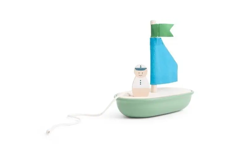 Drewniana łódka z kapitanem dla młodych marynarzy. Płyń swoją drewnianą łodzią z jej własnym kapitanem po wodzie, używając liny do ciągnięcia. Puść wodze fantazji w tej przygodzie i baw się na świeżym powietrzu. Żaglówka sprawdzi się także podczas wieczornych kąpieli w wannie.