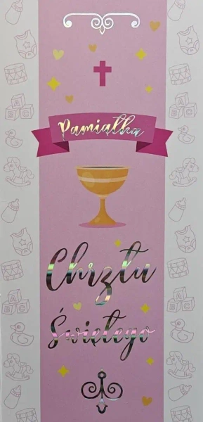 Karnet SE. Klasyczny karnet na chrzest. Uszlachetniony złoceniem holograficznym. Karnet zawiera życzenia.