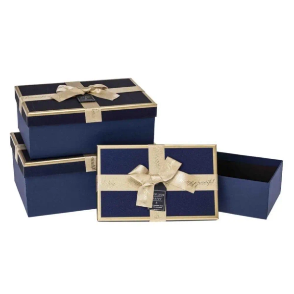 Pudełko prezentowe z kokardą 3szt niebieskie ROZETTE