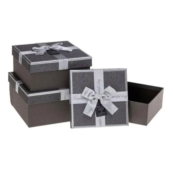 Pudełko prezentowe z kokardą 3szt srebrny ROZETTE