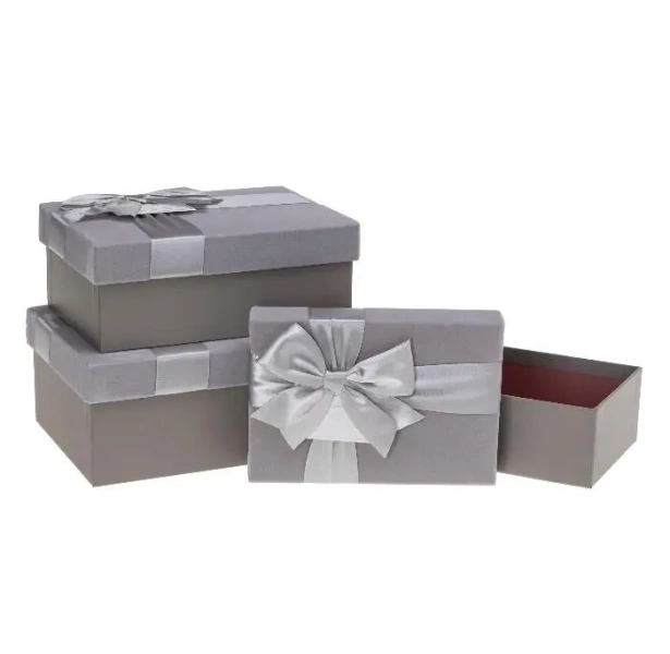Pudełko prezentowe z kokardą 3szt srebrny ROZETTE