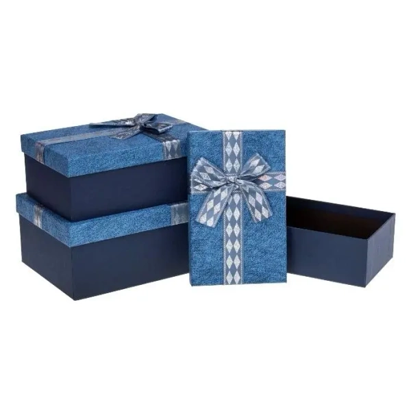 Pudełko prezentowe z kokardą 3szt niebieskie ROZETTE
