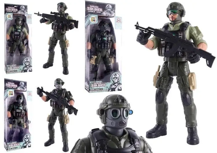 - Realistyczny design: Figurka oddaje wygląd prawdziwego żołnierza sił specjalnych z precyzyjnie odwzorowanymi detalami, takimi jak kamizelka, hełm, ochraniacze i karabin.