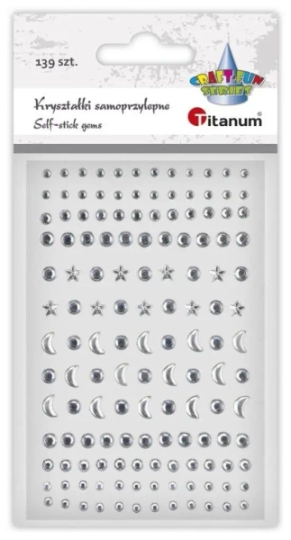 Przedstawiamy kryształki samoprzylepne, które zachwycają różnorodnością kształtów. W zestawie znajdziesz okrągłe o średnicach 3, 4 i 5 mm, urokliwe księżyce o wymiarach 4x7 mm, a także efektowne gwiazdki o wymiarze 5 mm. Całość obejmuje aż 139 elementów, co daje wiele możliwości dekorowania.