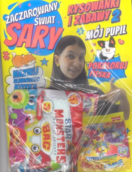 Książka aktywnościowa dla dziewczynek. Razem z Youtuberką Sarą dzieci poznają i rysują zwierzątka domowe wybierają swojego wymarzonego pupila. Kolorują pieski, kotki, króliki, świnki morskie i chomiki. Uzupełniają imiona, decydują o wyglądzie i charakterze zwierzątek, rysują własne rysunki. Rozwiązują też labirynty, zadania, szukają szczegółów. W trakcie zabawy dowiadują się jakie potrzeby mają zwierzątka i jak się nimi dobrze opiekować. Zabawa w kolorowanie piesków, kotków i króliczków. Do książki dołączone są trzy dodatki: 1 x saszetka Star Monsters 1 x Onepack SuperThings Mutant Battle, 1 x Onepack MojiPops.