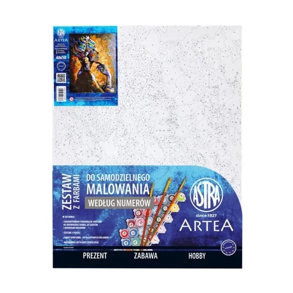 Zestaw o nazwie Astra Artea "Afrykańska dusza" stanowi idealną propozycję dla każdego, kto pragnie doświadczyć magii tworzenia. W komplecie znajdziesz podobrazie o rozmiarze 40×50 cm, które zostało dokładnie przygotowane i pokryte specjalnym gruntem. Na płótnie umieszczono szkic z numerami, co ułatwi odwzorowanie kolorów na stronie wzoru.