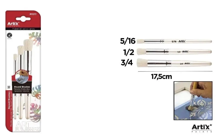 Prezentujemy zestaw trzech pędzli ARTIX, które doskonale sprawdzą się przy pracy z szablonami. Dzięki różnorodnym rozmiarom, zapewniają one możliwość wykonania zarówno delikatnych detali, jak i większych wzorów.