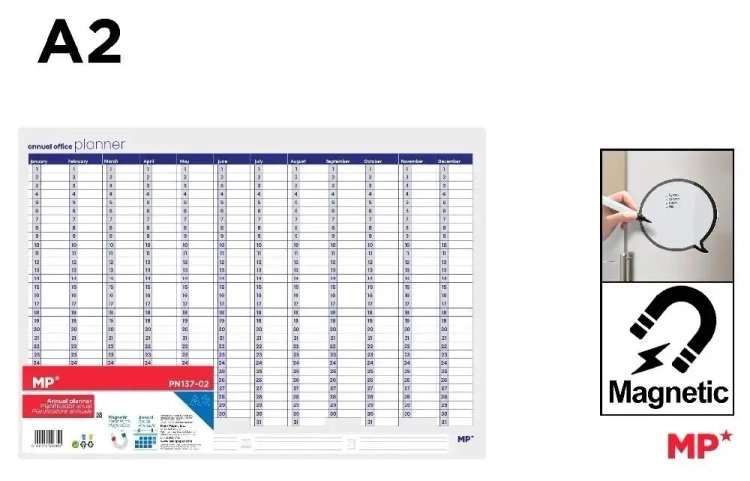 Ten magnetyczny planer roczny w rozmiarze A2, oferowany przez MP Main Paper, jest idealnym rozwiązaniem dla osób pragnących skutecznie organizować swoje codzienne obowiązki i plany na cały rok. Jego duża powierzchnia pozwala na wygodne notowanie ważnych dat i zadań.