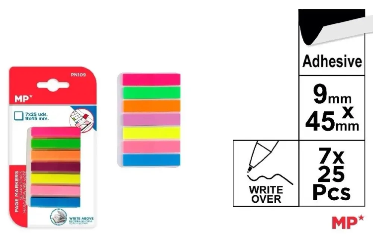 Zakładki indeksujące fluor 45x9mm 7x25szt - MP Main Paper