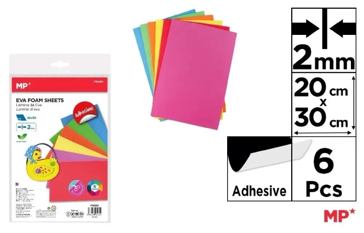 Przedstawiamy zestaw wysokiej jakości pianki samoprzylepnej EVA, która doskonale sprawdzi się przy różnorodnych projektach artystycznych i rękodzielniczych. W zestawie znajduje się sześć arkuszy w rozmiarze 20x30 cm oraz grubości 2 mm.