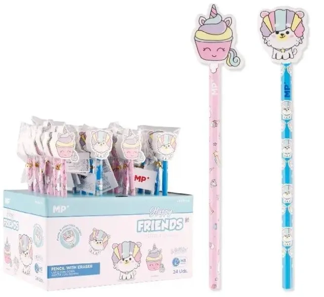 Ołówek z gumką HB Happy frends (24szt) - MP Main Paper