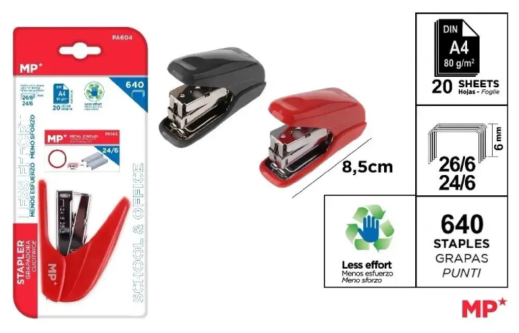 Zszywacz duży 60% mniej wysiłku 24/6 + zszywki MIX - MP Main Paper
