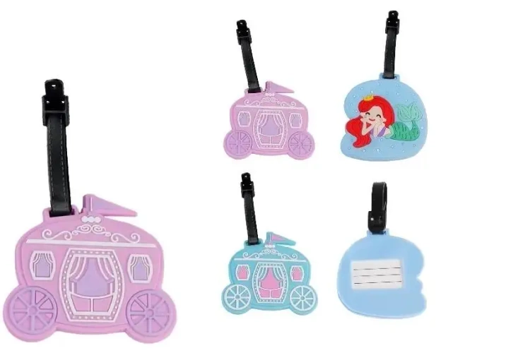 Zawieszka do walizek, plecaków lub innego bagażu z miejscem na wpisanie danych kontaktowych. Wykonana z elastycznego silikonu z tłoczeniem. Z regulowanym paskiem i przezroczystym plastikowym okienkiem z tyłu, które pozwala zobaczyć wpisane dane. Wymiary: 75 x 80mm. Projekt karoca i syrenka w trzech różnych kolorach.