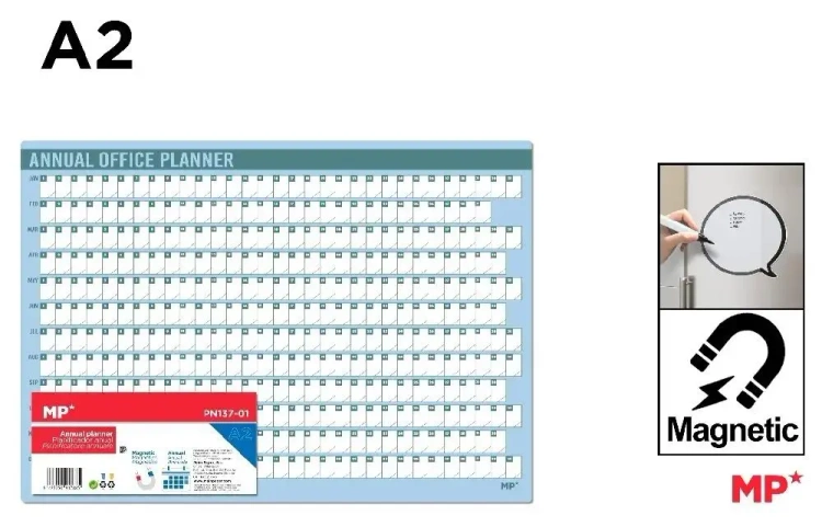 Przedstawiamy magnetyczny planer roczny w formacie A2 marki MP. To wyjątkowe narzędzie sprawi, że organizacja obowiązków i planowanie stają się niezwykle proste i przyjemne. Planer zaprojektowano z myślą o tych, którzy cenią sobie wygodę oraz funkcjonalność.